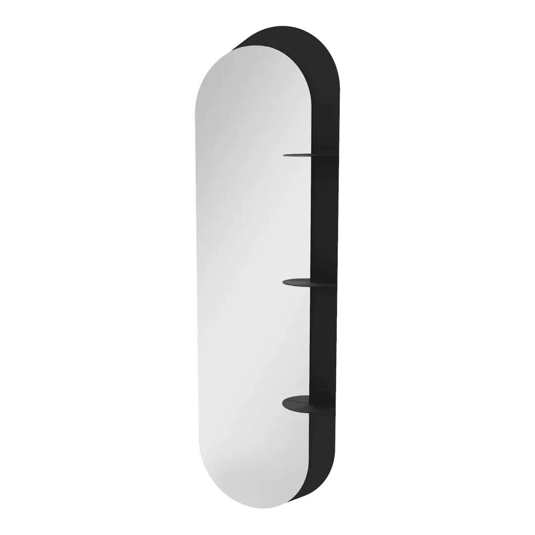 Met zijn elegante zwarte tint (RAL 9005) en verfijnde proporties vormt de Robuust Spiegel Mirror °02 de perfecte balans tussen modern design en praktische toepasbaarheid. Dankzij de krasbestendige poedercoating blijft de spiegel jarenlang in perfecte staat, ongeacht waar je hem plaatst.